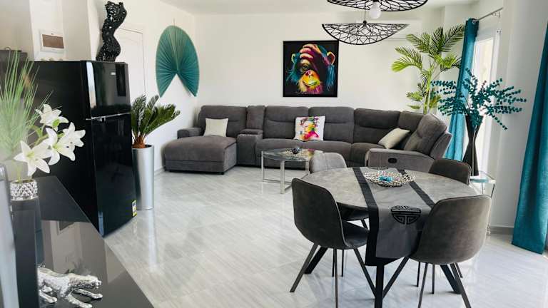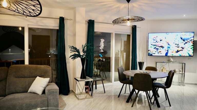 Die Ferienwohnung ist klimatisiert und umfasst 2 Schlafzimmer, ein Wohnzimmer sowie eine voll ausgestattete Küche mit Kühlschrank und Kaffeemaschine. Die Wohnung bietet zwei Badezimmer, die mit einer Dusche und einem Whirlpool ausgestattet sind. Handtücher und Bettwäsche werden bereitgestellt.