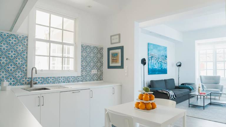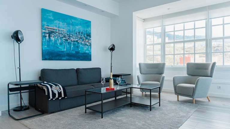 Die Ferienwohnung besteht aus zwei Schlafzimmern, einem Wohnzimmer und einer voll ausgestatteten Küche, die einen Kühlschrank und eine Kaffeemaschine umfasst. Es stehen zwei Badezimmer mit Bidet und Dusche zur Verfügung. Handtücher und Bettwäsche werden bereitgestellt.
