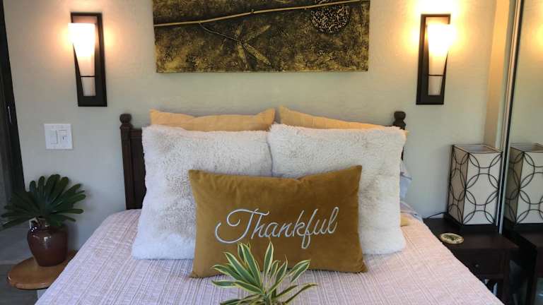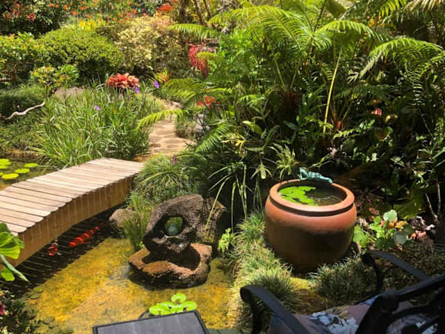 Verbringen Sie einen unvergesslichen Aufenthalt im The Secret Garden Room in Kapaa, Hawaii. Dieses Studio bietet eine idyllische Umgebung mit einem Koi-Teich und einem Wasserfall. Genießen Sie den Willkommenskorb mit frischen Lebensmitteln und kostenfreiem WLAN. Erkunden Sie den 6 Hektar großen botanischen Garten Smith's Tropical Paradise, der nur 6 km entfernt liegt. Das Studio selbst bietet einen eigenen Eingang, Essbereiche drinnen und draußen sowie Grillmöglichkeiten. Entspannen Sie sich auf der Sonnenterrasse oder spielen Sie eine Runde Tischtennis. Erkunden Sie die atemberaubenden Opaeka'a Falls und den Lydgate State Park, die beide in kurzer Fahrzeit erreichbar sind.