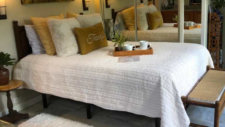Freuen Sie sich auf einen herzlichen Empfang mit einem Willkommenskorb im The Secret Garden Room. Dieser beinhaltet frisches saisonales Obst, Kaffee und Tee aus der Region sowie eine köstliche Schachtel Kauai-Kekse. Genießen Sie diese Leckereien in Ihrer Unterkunft und starten Sie perfekt in Ihren Urlaubstag.