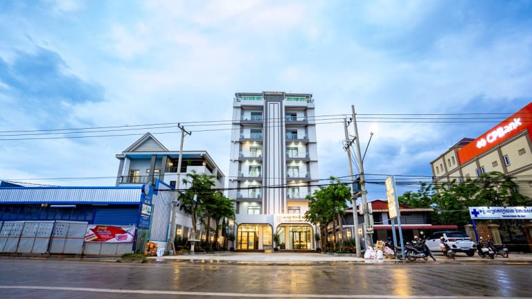 The Square Kampot Hotel bietet Übernachtungsmöglichkeiten mit einem Fitnesscenter, kostenlosem Privatparkplatz, einem Garten und einer Gemeinschaftslounge. Es handelt sich um ein modernes Hotel, das Stadtblick ermöglicht und über eine Terrasse sowie eine Bar verfügt. Die Rezeption ist rund um die Uhr besetzt und bietet verschiedene Dienstleistungen wie Flughafentransfers und Zimmerservice.