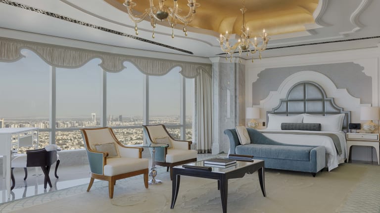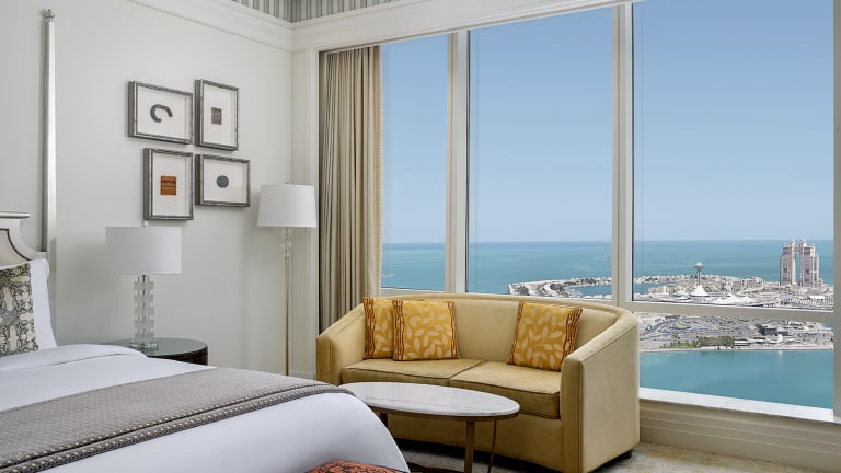 Das luxuriöse 5-Sterne-Hotel The St. Regis Abu Dhabi liegt im Herzen der Corniche von Abu Dhabi und bietet nicht nur einen eigenen Beach Club, sondern auch – durch seine zentrale Lage – ein pulsierendes Großstadtleben. Daher eignet es sich sowohl für Business-Trips als auch für einen Erholungs- und Badeurlaub für Singles oder Familien. Die stilvoll eingerichteten Zimmer und exklusiven Suiten befinden sich auf der 33. bis 49. Etage und bieten atemberaubende Aussichten auf die Stadt und den Arabischen Golf. Sieben Restaurants und Lounges bieten internationale Küche mit Casual, als auch Fine Dining Optionen an. Zwei große Swimmingpools, ein Kids Club, zwei Fitnesscenter sowie eines der größten preisgekrönten Spas der VAE bieten perfekte Erholung. Ein weiteres Highlight ist der St. Regis Butler-Service, der jedem Gast kostenlos zur Verfügung gestellt wird.