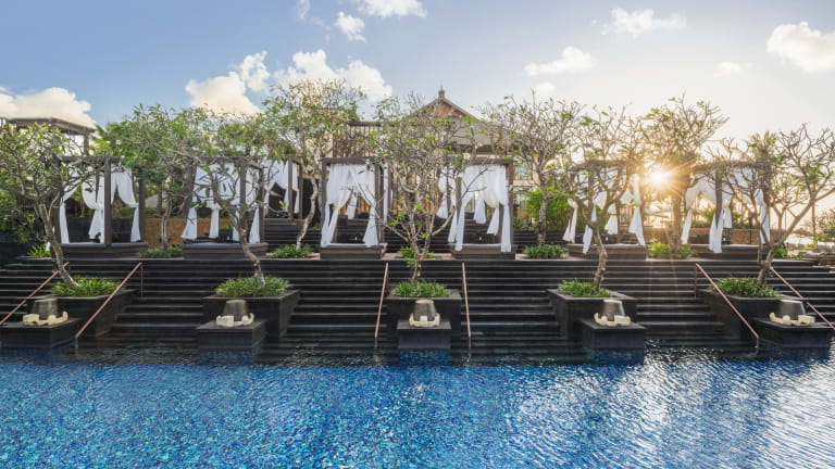 The St. Regis Bali Resort is nestled on the serene and spectacular Nusa Dua beach with its golden sands stretching on seemingly endlessly. The island home’s profoundly special beauty, creativity and spirituality are proudly celebrated at the luxury beach resort. You’ll feel it from the moment you enter the lobby, where a musician strums a traditional rindik - a staple at Balinese celebrations. Those are evident each evening when a dramatic fire dance performance takes place at sundown by the Grand Staircase. Our Nusa Dua, Bali, hotel's spacious rooms, suites and villas include outdoor space and provide garden, pool or beachfront views – with Villas and Residences with direct access to the beach. Your exquisite stay is coupled with renowned culinary offerings that include the best breakfast buffet in Bali: such as Lobster Omelet and Wagyu Steak and Eggs alongside your regular favorites. You can be assured your every need is in the care of the signature 24-hour butler service to assist with any request.