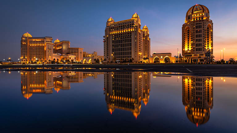 Das Hotel St. Regis Doha befindet sich im edlen Viertel West Bay von Doha. Es liegt direkt am hoteleigenen Strand und ermöglicht einen herrlichen Blick auf den Persischen Golf. Attraktionen wie das Planetarium und die Katara Moschee sind fußläufig erreichbar. Der Flughafen Hamad International Airport ist etwa 24 km entfernt, was einer Fahrzeit von ca. 30 Minuten entspricht.