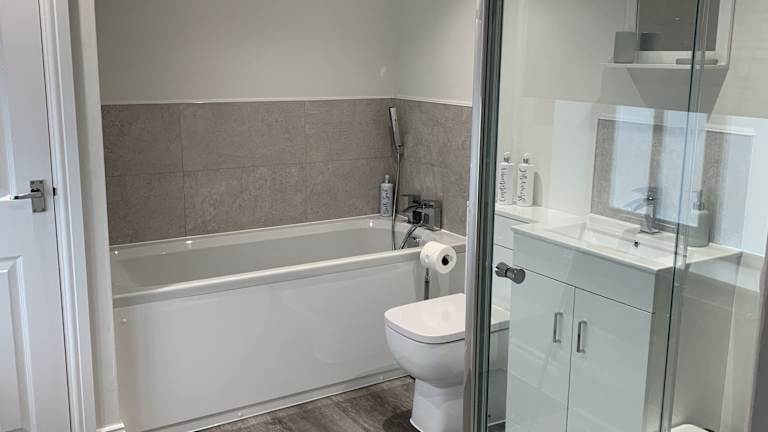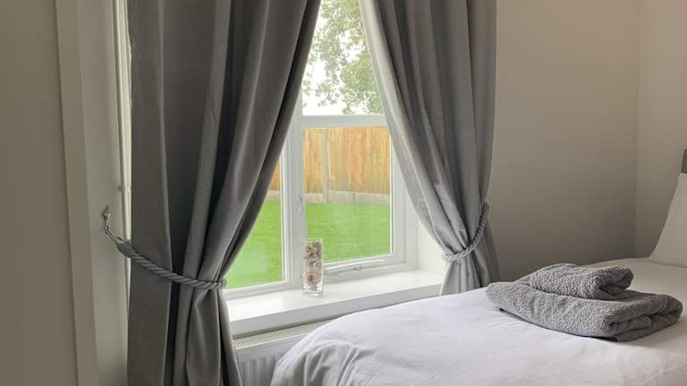 Das Ferienhaus besteht aus zwei Schlafzimmern, einem Wohnzimmer und einer voll ausgestatteten Küche. Die Küche ist mit einem Kühlschrank und einem Wasserkocher ausgestattet. Es gibt zudem ein Badezimmer mit Dusche und Whirlpool. Handtücher und Bettwäsche werden bereitgestellt.