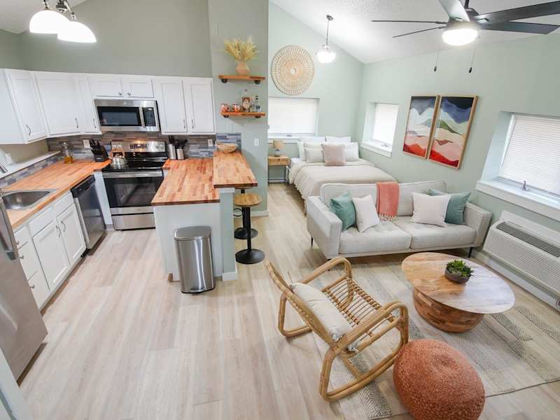 The StayAwhile Studio ist eine Ferienwohnung, die mit einem Fitnesscenter ausgestattet ist und klimatisierte Räumlichkeiten bietet. Die Unterkunft verfügt über einen Privatparkplatz, der den Gästen kostenlos zur Verfügung steht, sowie über kostenloses WLAN für eine angenehme Verbindung.
