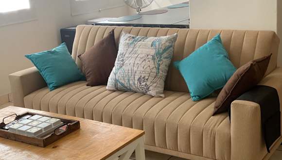 Die Ferienwohnung besteht aus zwei Schlafzimmern und einem Wohnzimmer. Zur Ausstattung gehören eine voll ausgestattete Küche mit Kühlschrank und Kaffeemaschine, zwei Badezimmer mit Dusche und kostenlosen Pflegeprodukten. Handtücher und Bettwäsche werden bereitgestellt, und die Ferienwohnung ist klimatisiert.