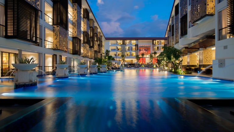 Das The Trans Resort Bali befindet sich im lebendigen Viertel Seminyak, einem der angesagtesten Orte auf Bali. In der Umgebung finden Sie zahlreiche Restaurants, Bars und Geschäfte. Der berühmte Potato Head Beach Club und der Strand Double Six sind nur eine kurze Fahrt vom Hotel entfernt. Der Flughafen Bali-Denpasar ist ebenfalls gut erreichbar.