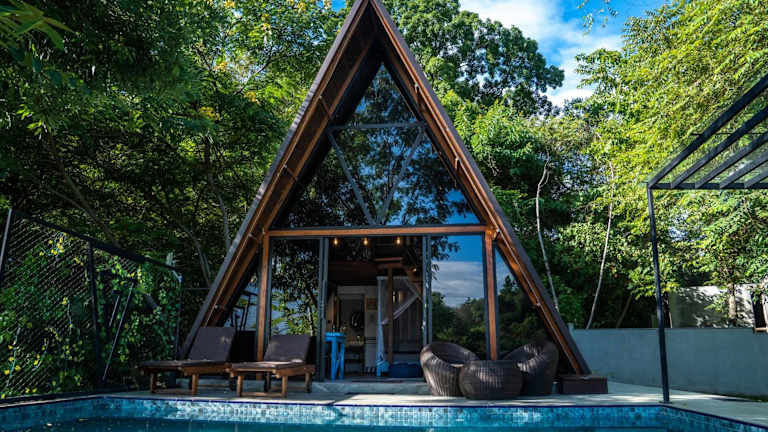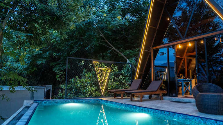 The Triangle Villa Private Pool ist eine Villa, die über einen eigenen Pool, einen Garten sowie eine Terrasse verfügt. Die Unterkunft bietet zahlreiche Annehmlichkeiten wie kostenloses Parken und eine Bar. Zudem ist die Villa klimatisiert und umfasst ein Schlafzimmer, ein Wohnzimmer sowie eine voll ausgestattete Küche.