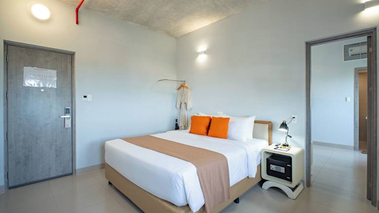 Die klimatisierten Zimmer sind mit einem Schreibtisch, einem Wasserkocher, einem Kühlschrank, einer Minibar, einem Safe und einem Flachbild-TV ausgestattet. Jedes Zimmer verfügt zudem über eine Terrasse und ein eigenes Badezimmer mit Dusche. Bettwäsche und Handtücher werden bereitgestellt.