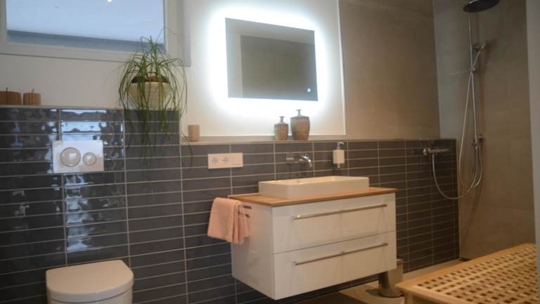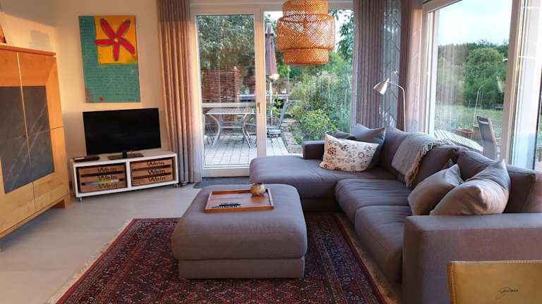 Das Ferienhaus umfasst 1 Schlafzimmer, ein Wohnzimmer, ein Badezimmer mit Dusche, eine gut ausgestattete Küche mit Kühlschrank und Geschirrspüler sowie eine Terrasse mit Gartenblick. Handtücher und Bettwäsche werden zur Verfügung gestellt.