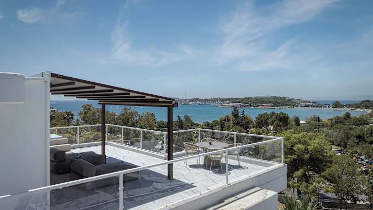 The Vouliagmeni Penthouse bietet eine Ferienwohnung mit Stadtblick, einer Terrasse und einem Balkon. Die Unterkunft ist klimatisiert und verfügt über ein Schlafzimmer, ein Wohnzimmer, eine voll ausgestattete Küche und ein Badezimmer. WLAN steht den Gästen kostenlos zur Verfügung.