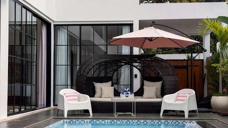 Die Villa besteht aus 4 separaten Schlafzimmern, einem Wohnzimmer sowie einer voll ausgestatteten Küche, die mit einem Kühlschrank und einer Mikrowelle ausgestattet ist. Es stehen 4 Badezimmer zur Verfügung, und Handtücher sowie Bettwäsche werden bereitgestellt.
