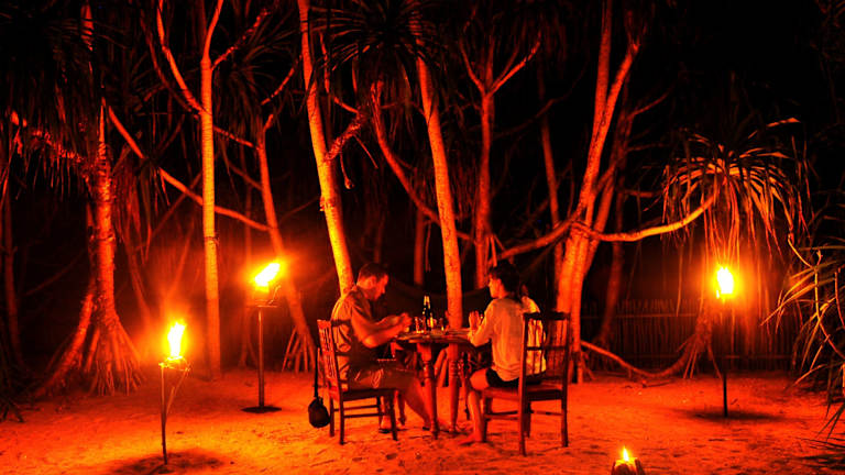 • Die Chalets liegen direkt am ruhigen Strand.