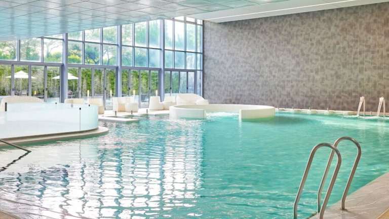 Das Hotel verfügt über Innen- und Außenpools, in denen Sie schwimmen und sich entspannen können. Im Wellnessbereich können Sie verschiedene Anwendungen wie Sauna, Massage und Hydrotherapie genießen. Für Fitnessbegeisterte gibt es einen Fitnessraum, in dem Sie sich auspowern können.