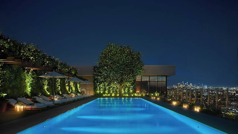 Die Unterkunft The West Hollywood EDITION ist ein luxuriöses Boutique-Hotel an der Schnittstelle zwischen Hollywood und Beverly Hills. Es bietet raumhohe Fenster mit Ausblicken auf West Hollywood und die Skyline von Los Angeles. Die Einrichtung beinhaltet eine Dachterrasse, einen Dachpool, eine Gemeinschaftslounge und ein Fitnesscenter. Das Hotel ist als Nichtraucherhotel klassifiziert und bietet moderne Annehmlichkeiten sowie einen Concierge-Service.