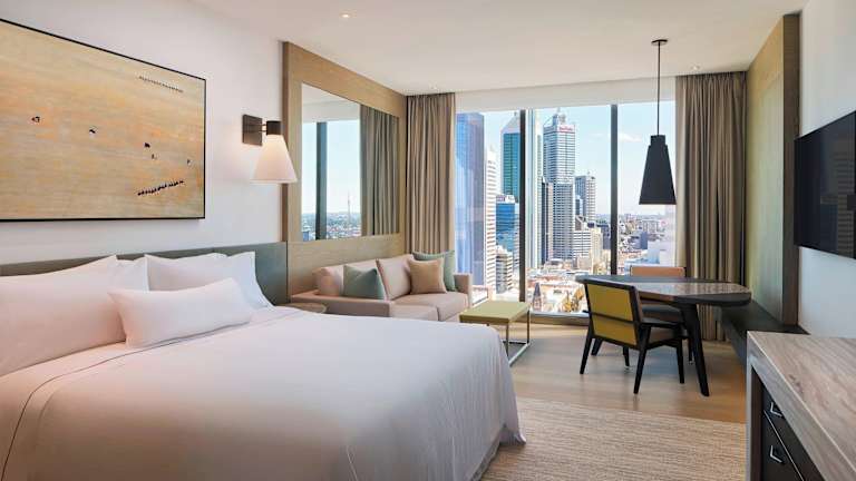 Die Zimmer im The Westin Perth sind stilvoll eingerichtet und bieten den Gästen einen komfortablen Rückzugsort. Sie verfügen über hochwertige Annehmlichkeiten wie Heavenly-Betten, 55-Zoll-TVs mit Premium-Kanälen und eine erfrischende Regendusche.