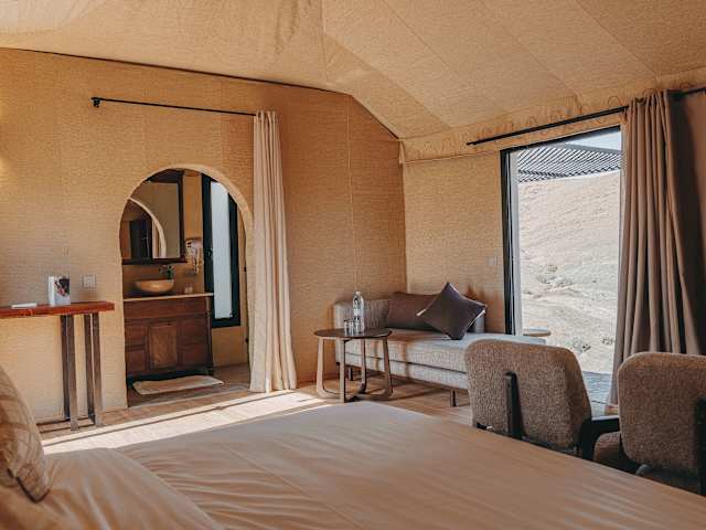 Die Unterkunft The White Camel Camp - Agafay Desert Activities befindet sich in der Nähe von Marrakesch, umgeben von der beeindruckenden Landschaft der Agafay-Wüste. Die Menaragärten sind etwa 32 km entfernt, während der Marktplatz Djemaa el Fna eine Distanz von 34 km hat. Der nächstgelegene Flughafen, der Flughafen Marrakesch Menara, befindet sich in 29 km Entfernung und ein kostenpflichtiger Flughafentransfer wird angeboten.
