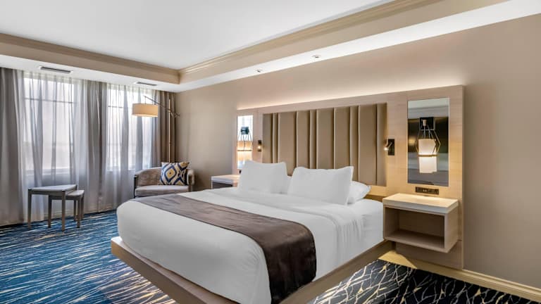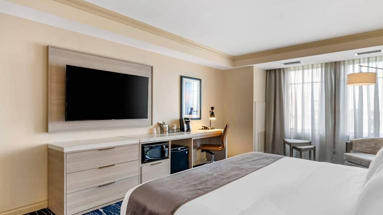 Die Zimmer im Wyvern Hotel, Ascend Hotel Collection sind komfortabel und stilvoll eingerichtet. Jedes Zimmer verfügt über ein Doppelbett oder ein Sofabett, einen Schreibtisch, einen Safe und ein eigenes Badezimmer mit Dusche und Badewanne. Zur weiteren Ausstattung gehören ein Flachbildfernseher mit Satellitenempfang und Pay-per-View-Optionen, eine Klimaanlage, eine Mikrowelle, eine Tee-/Kaffeemaschine und kostenfreies WLAN. Rollstuhlgerechte Zimmer mit barrierefreien Badezimmern sind ebenfalls verfügbar.
