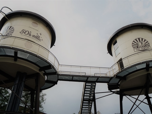 Sie wollten schon immer das Lebensgefühl der 50er Jahre erleben? Wir begrüßen Sie herzlich in unserem 50’s ville Motel, wo Sie ganz im Stil der amerikanischen 50er Jahre übernachten können. Das Motel verfügt über insgesamt 6 Zimmer, 3 Hotelzimmer im Erdgeschoß sowie 3 Hotelzimmer in der ersten Etage. Jedes dieser Nichtraucher-Zimmer ist mit Sorgfalt dem Stil der 50er Jahre nachempfunden. Natürlich müssen Sie aber auf keine Annehmlichkeiten vor Ort verzichten. Alle unsere Hotelzimmer sind liebevoll der damaligen Zeit entsprechend eingerichtet und verfügen über einen Wohn/Schlafraum mit extra großem Doppelbett, einem exklusivem Sanitärbereich mit Dusche sowie allen Annehmlichkeiten von heute, wie zum Beispiel Fußbodenheizung, HD-TV, Radio mit USB-Anschluss, WLAN und einer Ladestation für E-Autos. Oder mögen Sie es etwas exklusiver? Neben dem klassischen Motel können Sie auch in einem der europaweit einzigartigen über 15m hohen Wassertürme übernachten. Es erwarten Sie 4 Rundbau-Zimmer im Industriedesign mit Wohn/Schlafraum, ein separates Bad mit RegenDusche und WC, Fußbodenheizung, HD-TV, WLAN sowie einen atemberaubenden Blick über das 50’s ville Gelände. www.50svillemotel.de