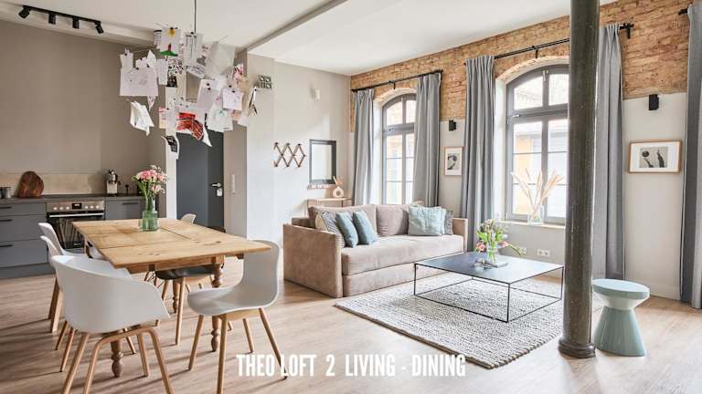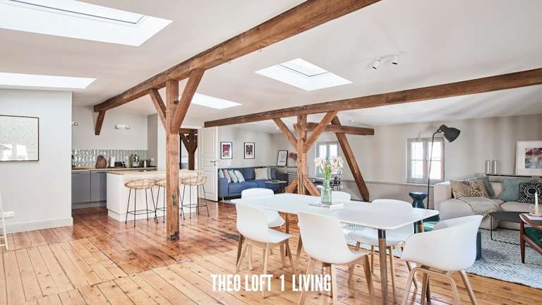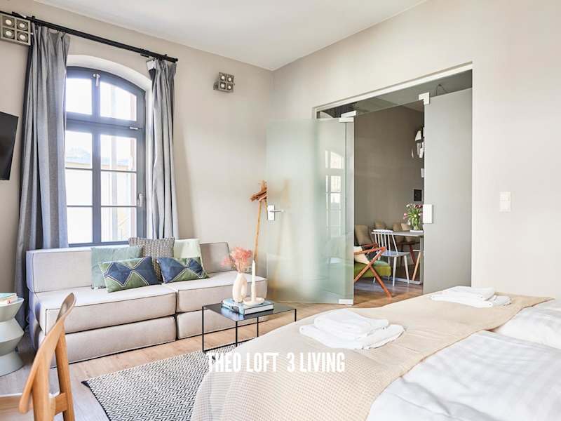 TheoLoft bietet Übernachtungsmöglichkeiten mit kostenlosem WLAN und einem kostenlosen Privatparkplatz. Die Unterkunft verfügt über eine Terrasse und richtet sich an Nichtraucher. Für den Check-in ist ein Mindestalter von 18 Jahren erforderlich, und Haustiere sind nicht gestattet.