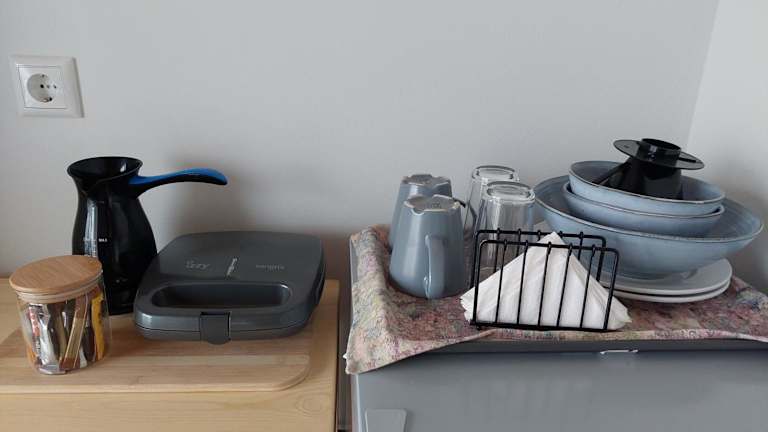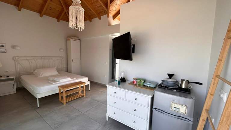 Im Hotel Theros - Bahia gibt es kein eigenes Restaurant. In der Umgebung finden Sie jedoch eine Vielzahl von Restaurants und Tavernen, in denen Sie die lokale griechische Küche probieren können. Genießen Sie frischen Fisch, Meeresfrüchte und andere köstliche Gerichte, während Sie den Blick auf das Meer genießen.