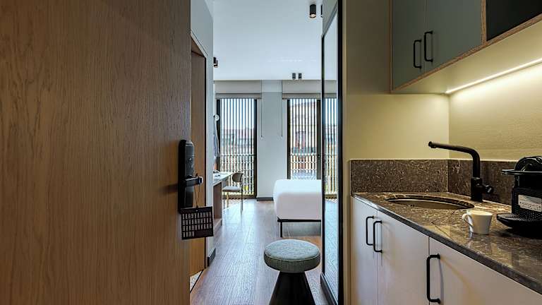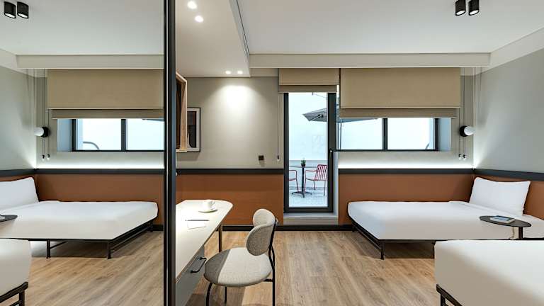 Die Zimmer sind mit einer Klimaanlage sowie Heizung ausgestattet und verfügen über ein Doppelbett oder ein Sofabett. Ein Safe, ein Schreibtisch, ein Flachbild-TV sowie kostenloses WLAN sind ebenfalls vorhanden. Jedes Zimmer hat ein eigenes Badezimmer mit Dusche, Haartrockner und kostenlosen Pflegeprodukten. Zudem sind in den Bädern Kosmetikartikel und eine Auswahl an Handtüchern vorhanden. Familien- und Nichtraucherzimmer werden angeboten.