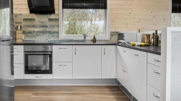Die Unterkunft besitzt eine voll ausgestattete Küche, die ideal für die Selbstverpflegung geeignet ist und unter anderem mit einem Kühlschrank sowie einem Geschirrspüler ausgestattet ist.