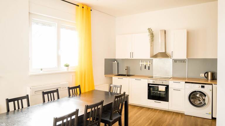 Die Ferienwohnung bietet drei Schlafzimmer sowie eine große Küche und ist mit einem digitalen Self-Check-In-System ausgestattet. Kostenloses WLAN steht in der gesamten Unterkunft zur Verfügung. Die Unterkunft ist klimatisiert und mit einem Fernseher sowie einer Küche, ausgestattet mit Kühlschrank und Geschirrspüler, versehen. Handtücher und Bettwäsche werden bereitgestellt.