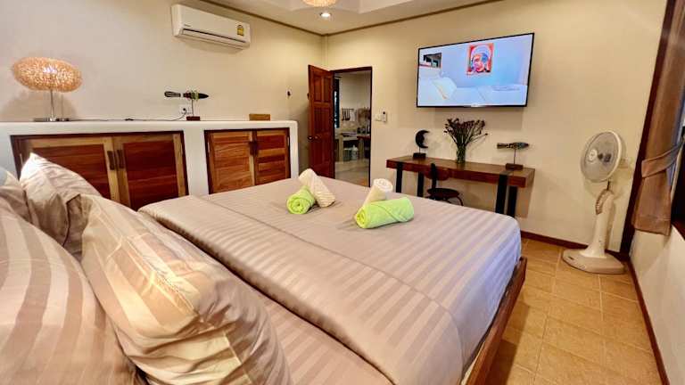 Die Three rare & private front beach villas auf Koh Phangan bieten Ihnen eine erstklassige Unterkunft nur wenige Schritte vom wunderschönen Strand Thong Sala entfernt. Hier können Sie eine entspannte Atmosphäre inmitten der Natur genießen und sich von den Annehmlichkeiten wie dem hoteleigenen Restaurant und der Bar verwöhnen lassen. Die klimatisierten Zimmer sind stilvoll eingerichtet und verfügen über modernen Komfort wie Flachbild-TV und eigenen Safe. Darüber hinaus bietet die Unterkunft einen Fahrradverleih und eine Autovermietung, um die Gegend zu erkunden.