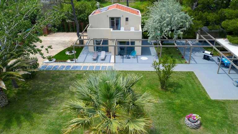 Das Ferienhaus befindet sich in Vourvourou, in der Nähe des Strandes Sani, der 38 km entfernt ist. Ouranoupoli ist 23 km entfernt. Der Flughafen Thessaloniki liegt in einer Entfernung von 77 km.
