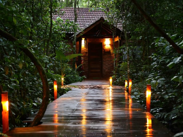 Die Zimmer im Tierra Guaraní Lodge sind schick eingerichtet und klimatisiert. Jedes Zimmer verfügt über Kabel-TV und ein eigenes Bad. Einige Zimmer bieten zudem einen großzügigen Balkon mit direktem Blick auf den Wald. WLAN ist in den öffentlichen Bereichen kostenfrei verfügbar.