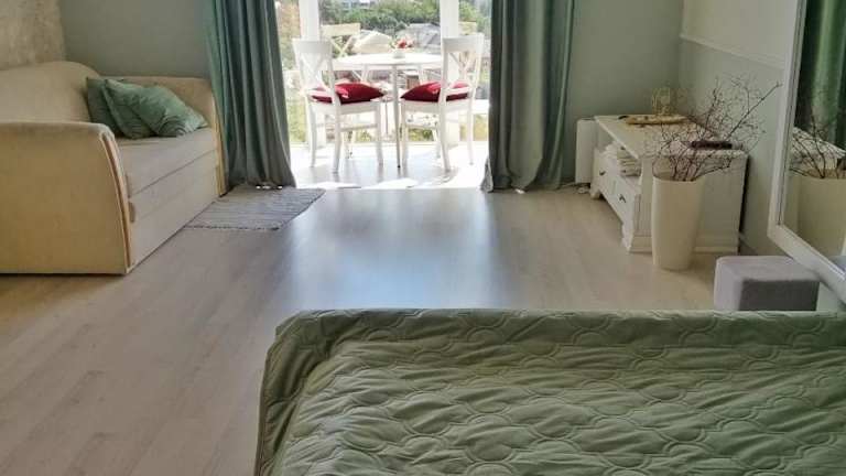 Das klimatisierte Apartment im Tiffany Apartment verfügt über ein Schlafzimmer, ein Wohnzimmer und eine voll ausgestattete Küche. Die moderne Einrichtung und der Balkon bieten eine gemütliche Atmosphäre, in der Sie sich wie zu Hause fühlen können. Die Küche ist mit einem Kühlschrank und einem Wasserkocher ausgestattet, so dass Sie Ihre eigenen Mahlzeiten zubereiten können. Das Badezimmer verfügt über eine Dusche und kostenlose Pflegeprodukte stehen zur Verfügung. Handtücher und Bettwäsche können gegen Aufpreis zur Verfügung gestellt werden.