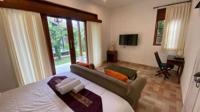 Die Tiis Garden Puri Villas bieten ihren Gästen die Möglichkeit, die Umgebung mit dem Fahrrad zu erkunden. Das Hotel kann Fahrradverleih für die Gäste arrangieren, um die schöne Landschaft und die Sehenswürdigkeiten in der Nähe zu entdecken. Nach einem aktiven Tag können sich die Gäste im Garten entspannen und die ruhige Atmosphäre genießen.
