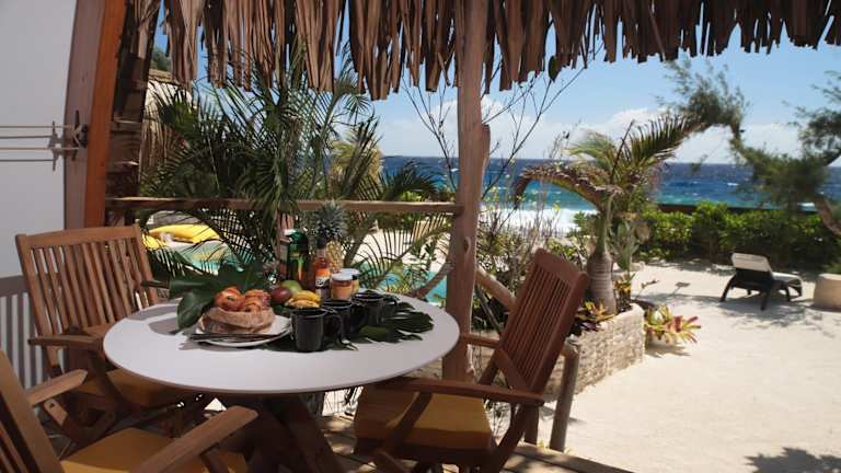Tiki Beach Moorea, Piscine & Petit Déjeuner bietet eine attraktive Ausstattung mit einem Pool, einem Garten, einer Terrasse und einem Blick auf das Meer. Die Unterkunft ermöglicht den Gästen, in ruhiger und naturnaher Umgebung zu entspannen.