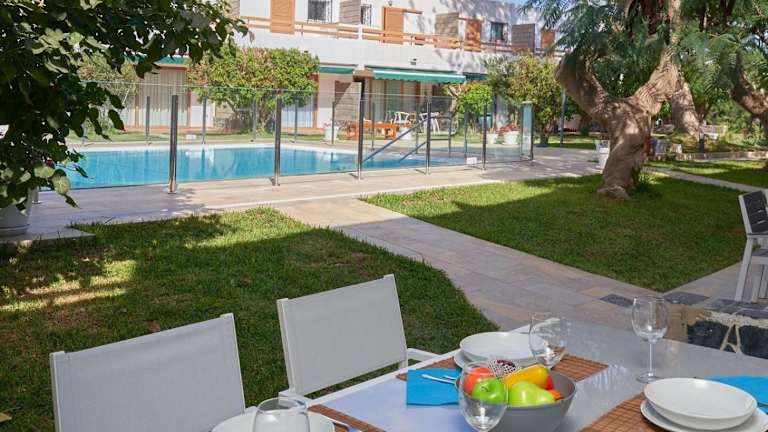 Timon Suites San Agustin bietet einen Außenpool und ist mit kostenlosem WLAN sowie einem privaten Parkplatz ausgestattet. Die Unterkunft verfügt über eine Terrasse mit Blick auf den Garten, die zum Entspannen einlädt.