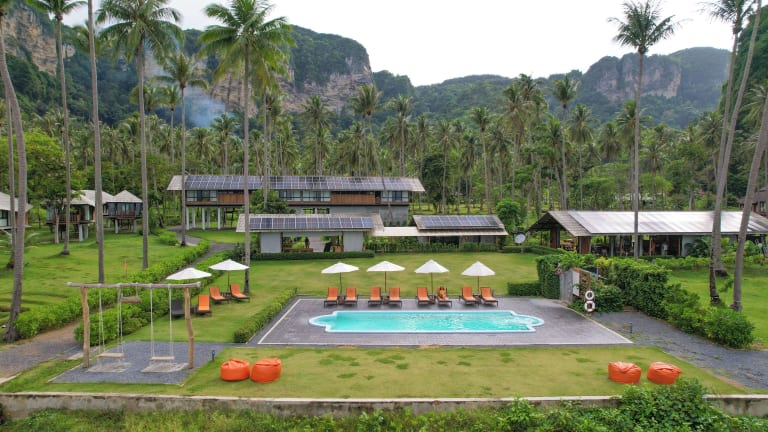 Tinidee Hideaway Tonsai Beach Krabi - SHA Extra Plus bietet Übernachtungsmöglichkeiten mit Blick auf den Strand in einer naturnahen Umgebung. Die Ausstattung umfasst einen Garten, eine Gemeinschaftslounge und ein Restaurant sowie einen Außenpool.