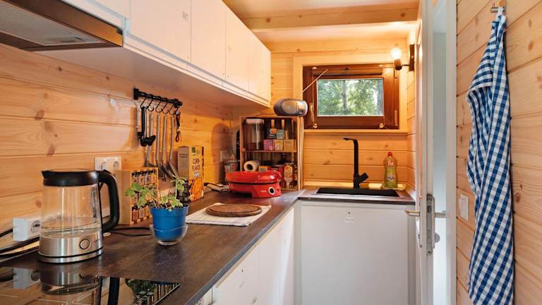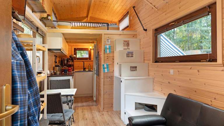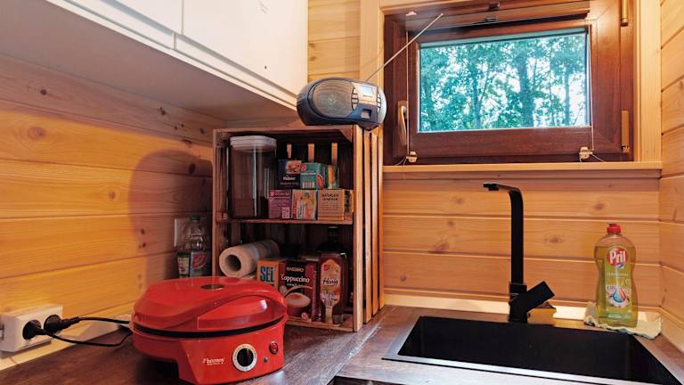 Tiny House Ernesto ist ein Ferienhaus, das mit modernen Annehmlichkeiten wie einer Küche und einem TV ausgestattet ist. Es bietet einen Garten, kostenlosen Privatparkplatz und eine Nichtraucherumgebung. Die Unterkunft erlaubt Haustiere.
