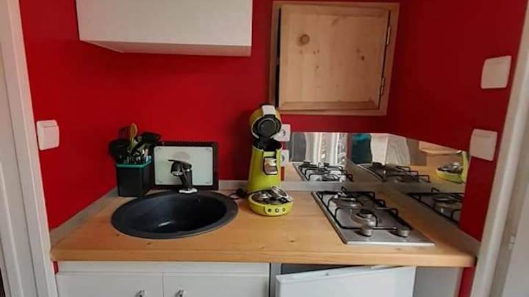 Das Tiny House JOY verfügt über ein Schlafzimmer, ein gemütliches Wohnzimmer und eine voll ausgestattete Küchenzeile mit Kühlschrank und Kaffeemaschine. Das Badezimmer ist mit einer Dusche ausgestattet. Handtücher und Bettwäsche können gegen Aufpreis zur Verfügung gestellt werden. Das Ferienhaus bietet auch eine Terrasse und einen Balkon, von denen aus Sie den atemberaubenden Bergblick genießen können.