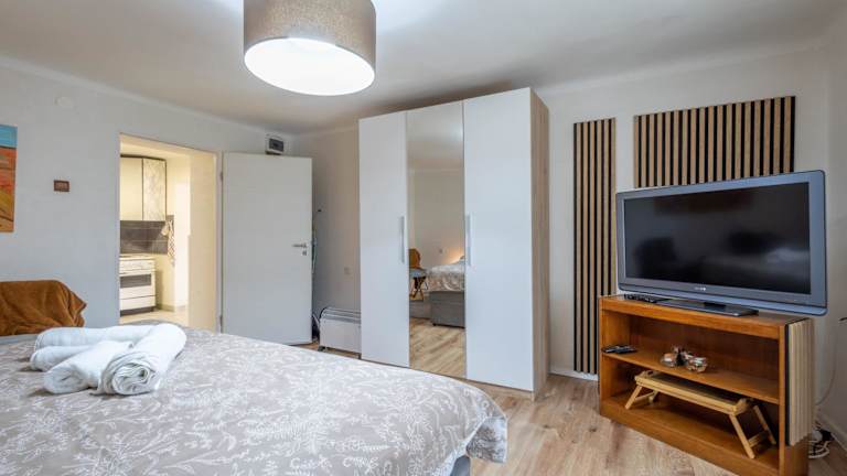 Die Ferienunterkunft besteht aus einem Schlafzimmer, einem Wohnzimmer und einer voll ausgestatteten Küche, die mit einem Kühlschrank und einer Kaffeemaschine ausgestattet ist. Das Badezimmer bietet eine Dusche sowie einen Whirlpool. Zur Ausstattung gehören außerdem ein Flachbild-TV und Klimaanlage.
