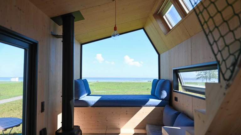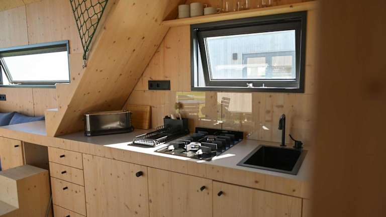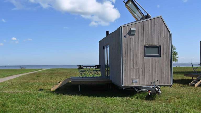 Tiny House Pioneer 1 - Green Tiny Spot Schillig ist eine moderne Ferienunterkunft mit einem einzigartigen Konzept. Die Übernachtungsmöglichkeiten bieten Zugang zu einer Sauna sowie einer Terrasse mit Meerblick. Die Unterkunft ist für Nichtraucher und bietet allergikerfreundliche Zimmer.
