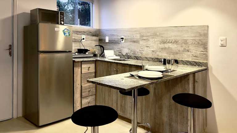 Die einladenden Wohneinheiten verfügen über eine voll ausgestattete Küche, die mit einem Kühlschrank, einer Mikrowelle, einer Kaffeemaschine und einem Wasserkocher ausgestattet ist. Dies ermöglicht den Gästen die Zubereitung eigener Mahlzeiten.