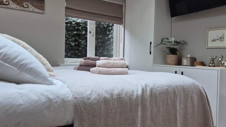 Die Tiny Villa de Haas mit Infrarotsauna bietet ein komfortables Apartment mit einem Schlafzimmer und einem Badezimmer. Das Apartment ist stilvoll eingerichtet und verfügt über eine voll ausgestattete Küche, einen Essbereich und einen Flachbild-Kabel-TV. Bettwäsche und Handtücher werden gestellt, damit Sie sich wie zu Hause fühlen können. Die Terrasse mit Blick auf den Garten lädt zum Entspannen ein.