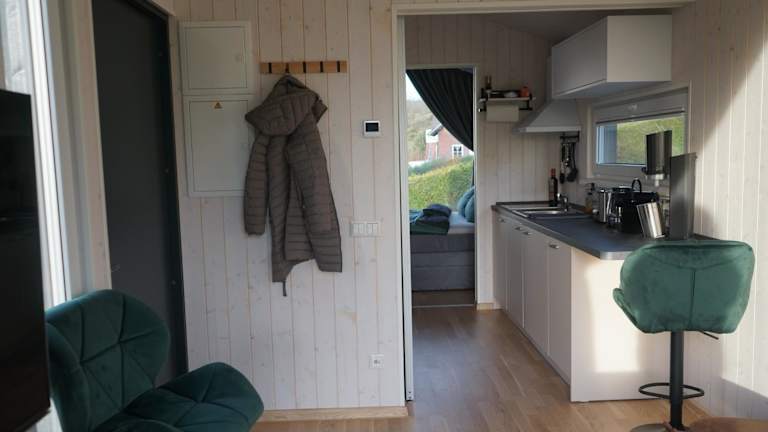 Das Ferienhaus verfügt über ein Schlafzimmer und ein Wohnzimmer. Es beinhaltet eine voll ausgestattete Küchenzeile, die mit einem Kühlschrank und einer Kaffeemaschine ausgestattet ist. Des Weiteren gibt es ein Badezimmer mit Dusche und Haartrockner. Handtücher und Bettwäsche werden zur Verfügung gestellt. Die Unterkunft ist klimatisiert und bietet Nichtraucherzimmer.