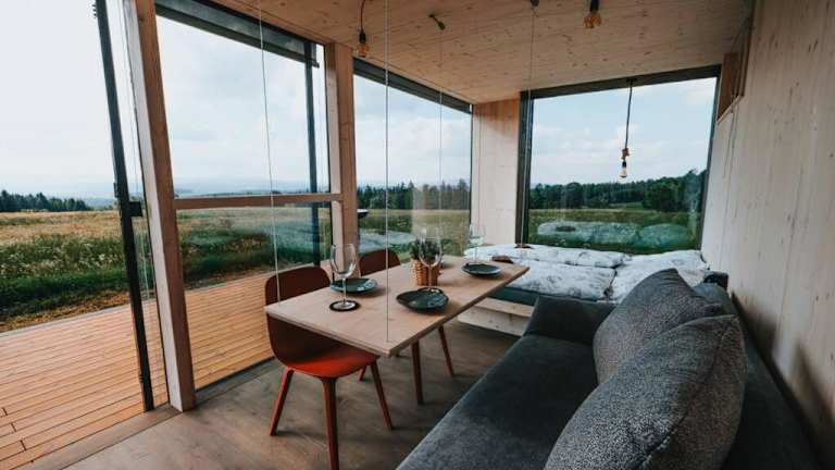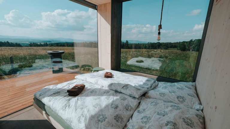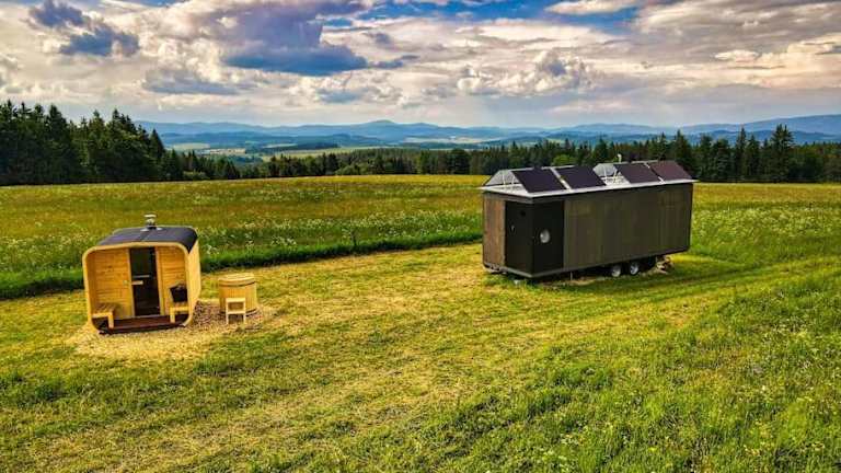 Die Unterkunft TinyHouse Rumcajs befindet sich in Malšín, 18 km entfernt vom Stausee Lipno und 27 km von Hauptplatz in Český Krumlov. Schloss Krumau ist 29 km entfernt. Der Flughafen Budweis liegt in einer Entfernung von 52 km.