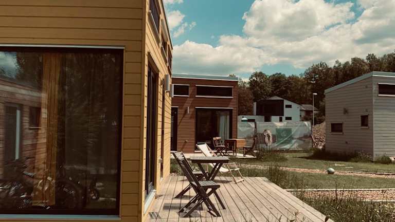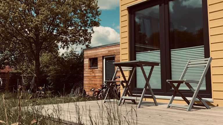 Die TINYLODGE am Ellertshäuser See bietet geräumige Lodges mit moderner Ausstattung. Jede Lodge verfügt über einen Balkon mit Blick auf den Garten, eine voll ausgestattete Küche mit Kühlschrank, Backofen, Kochfeld und Kaffeemaschine sowie ein eigenes Bad mit Dusche. Die Unterkünfte bieten Ihnen den Komfort und die Annehmlichkeiten, die Sie für einen angenehmen Aufenthalt benötigen.