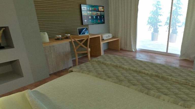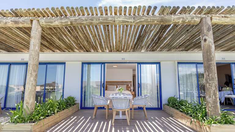 Die Zimmer des Hotels sind mit einer Klimaanlage und Heizung ausgestattet. Sie verfügen über einen Balkon oder eine Terrasse mit Gartenblick. Zu den weiteren Annehmlichkeiten zählen ein Doppelbett, ein Queensize-Bett oder ein Sofabett sowie ein Safe, ein Minikühlschrank, ein Telefon, ein Fernseher und kostenloses WLAN. Die Badezimmer sind mit einer Dusche, Badewanne, Bidet und einem Haartrockner sowie Kosmetikartikeln ausgestattet. Familien- und Nichtraucherzimmer sind ebenfalls vorhanden.