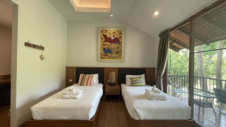Die Zimmer in der Tippaya Villa sind komfortabel und geschmackvoll eingerichtet. Jedes Zimmer verfügt über eine Klimaanlage, einen Schreibtisch, einen Flachbild-TV und ein eigenes Badezimmer. Bettwäsche und Handtücher sind ebenfalls vorhanden. Von Ihrem eigenen Balkon aus können Sie den atemberaubenden Bergblick genießen. Für zusätzlichen Komfort steht Ihnen ein Kühlschrank zur Verfügung.
