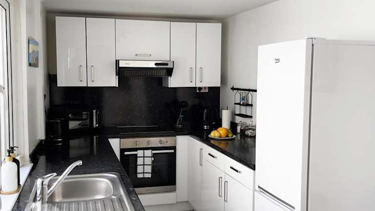Das Ferienhaus bietet drei Schlafzimmer und beinhaltet eine voll ausgestattete Küche mit Kühlschrank und Geschirrspüler. Die Wohnbereiche umfassen einen TV und einen Sitzbereich sowie zwei Badezimmer, die mit einer Dusche ausgestattet sind. Zur Verfügung stehen ebenfalls Handtücher und Bettwäsche.