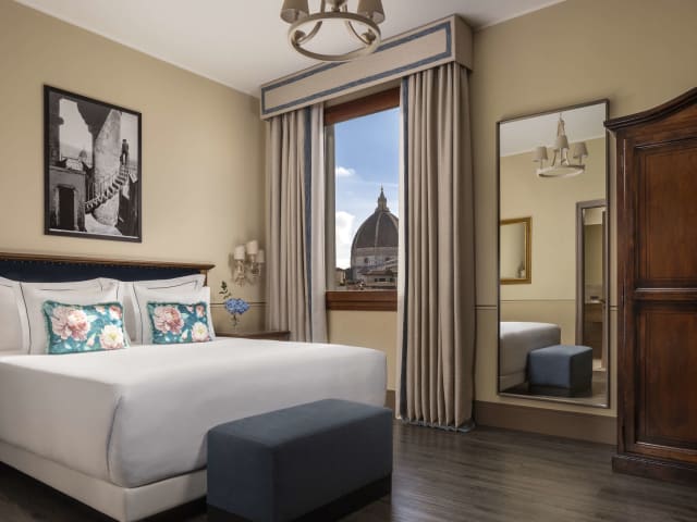 Das Palazzo Gaddi bietet insgesamt 98 Zimmer, darunter Einzel-, Doppel- und Junior-Suiten. Die Zimmer sind über einen Aufzug erreichbar und verfügen über eine Klimaanlage, Heizung, Safe, Minibar, Tee-/Kaffeemaschine und kostenfreies WLAN. Die Badezimmer sind mit Dusche oder Badewanne, Haartrockner und kostenlosen Pflegeprodukten ausgestattet.